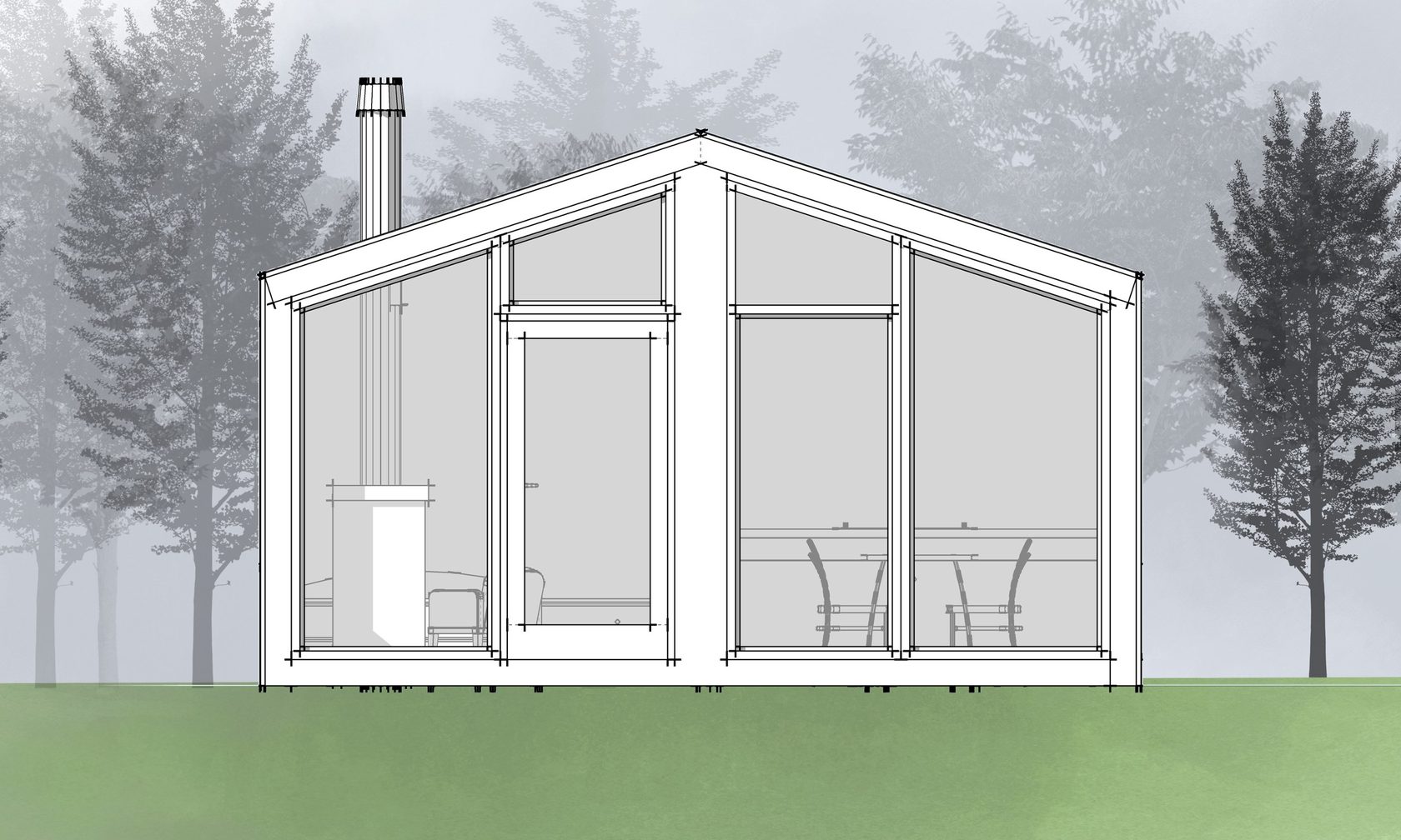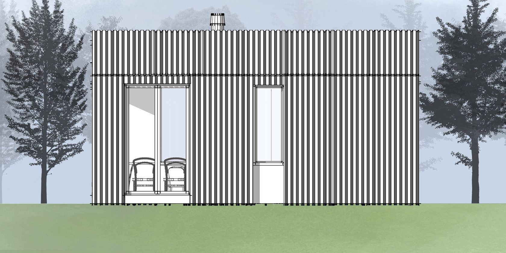 - Внешняя отделка древесно-полимерным композитом/массивом дерева/гибкая черепица/металл;