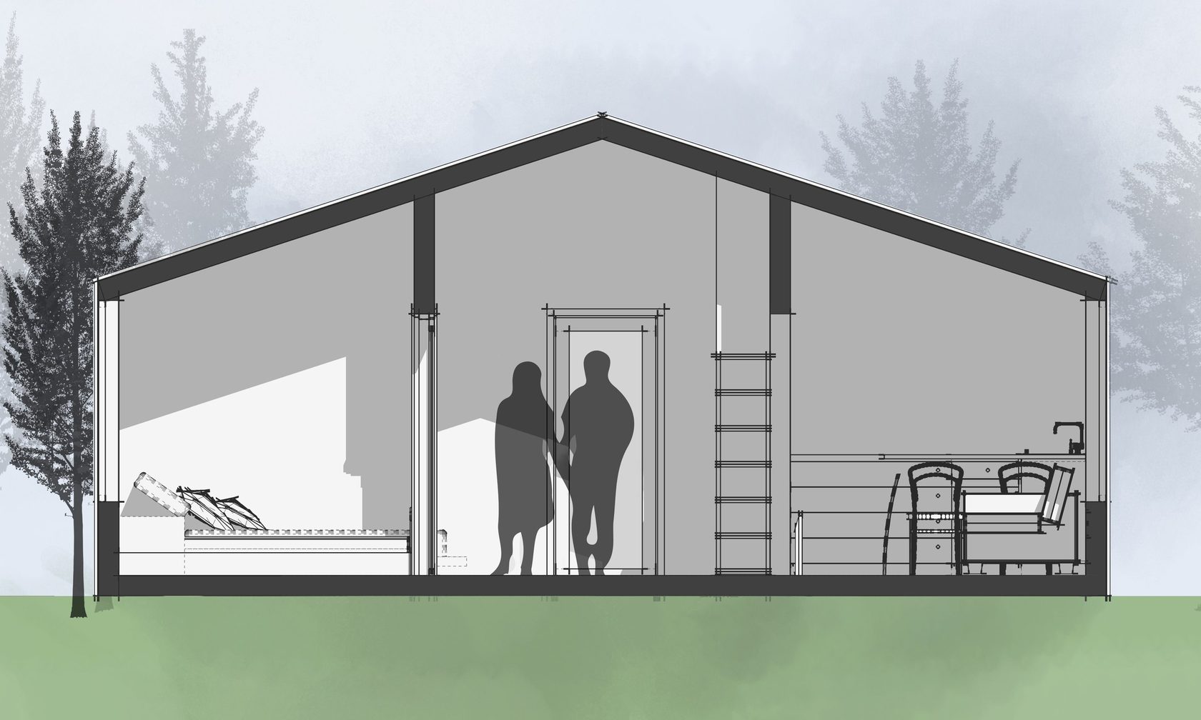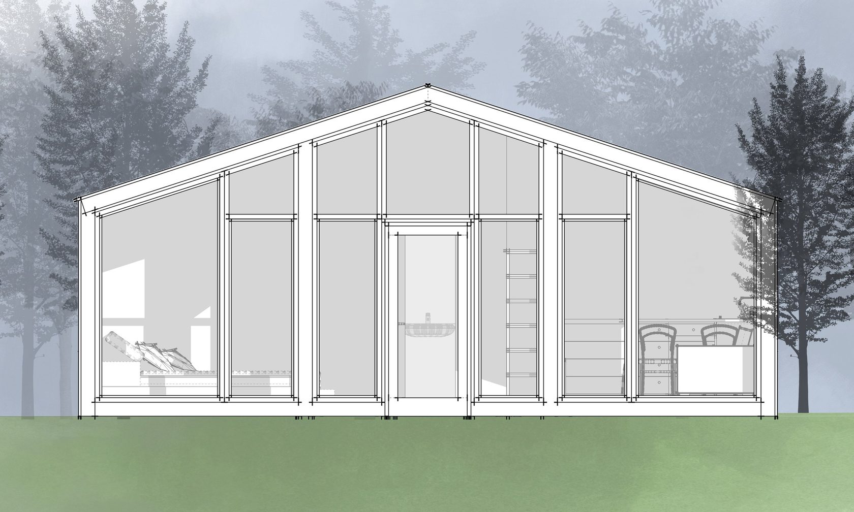 - Внешняя отделка древесно-полимерным композитом/массивом дерева/гибкая черепица/металл;
