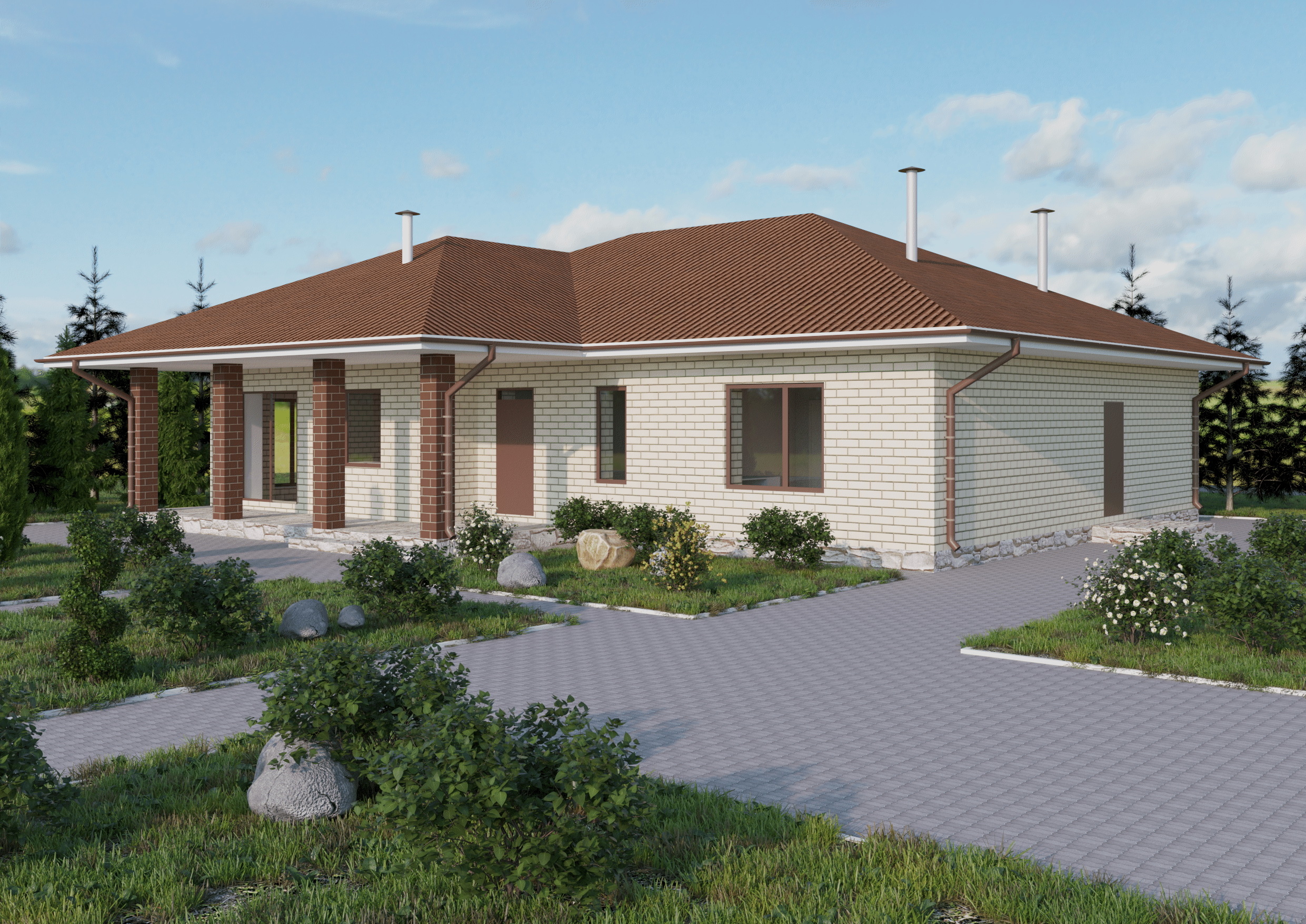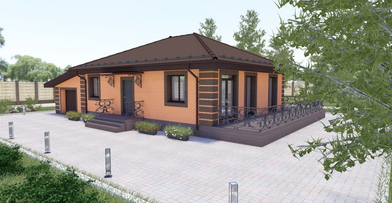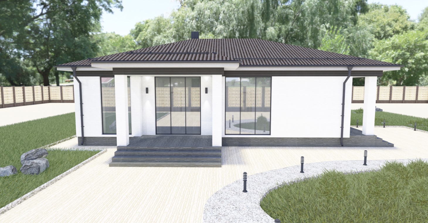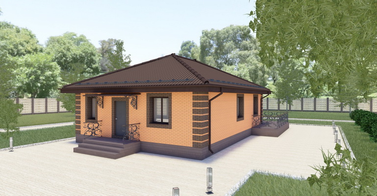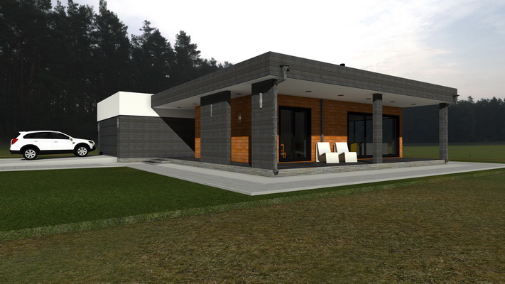 Проект Сканди 2 - одноэтажный дом из кирпича с плоской кровлей