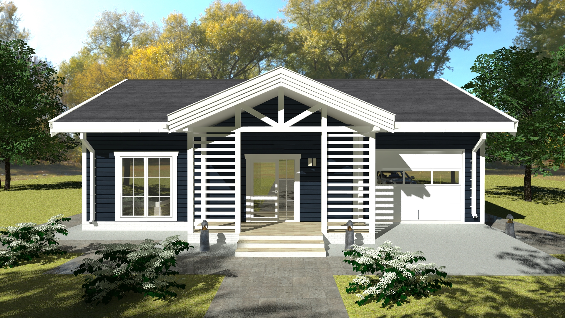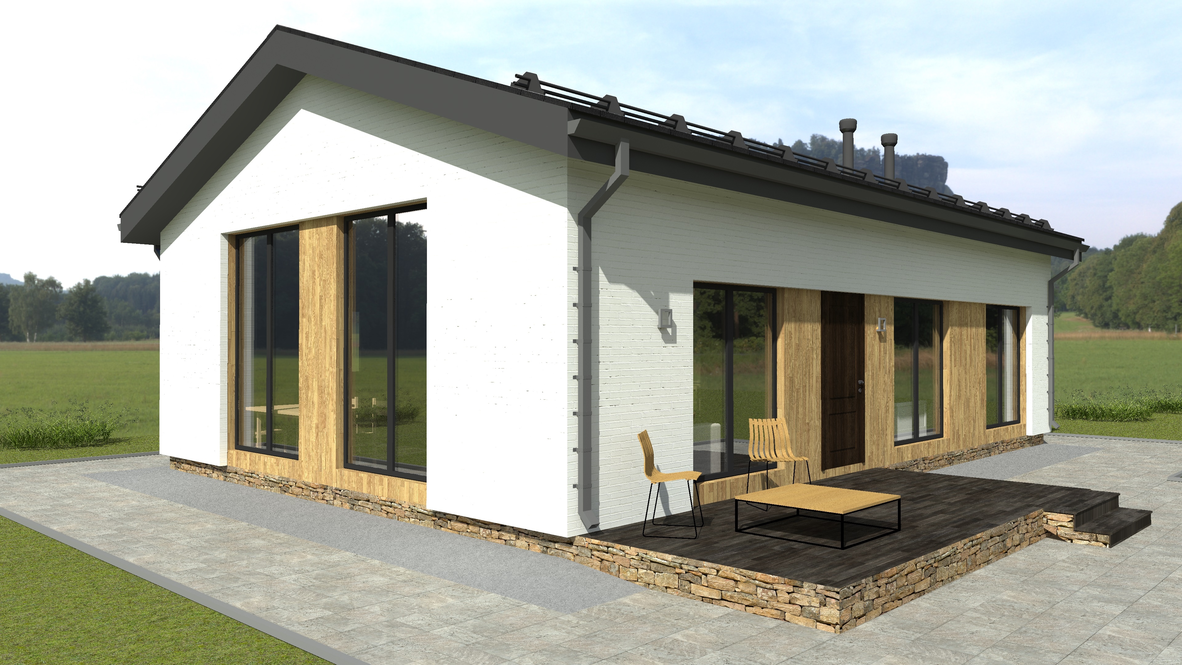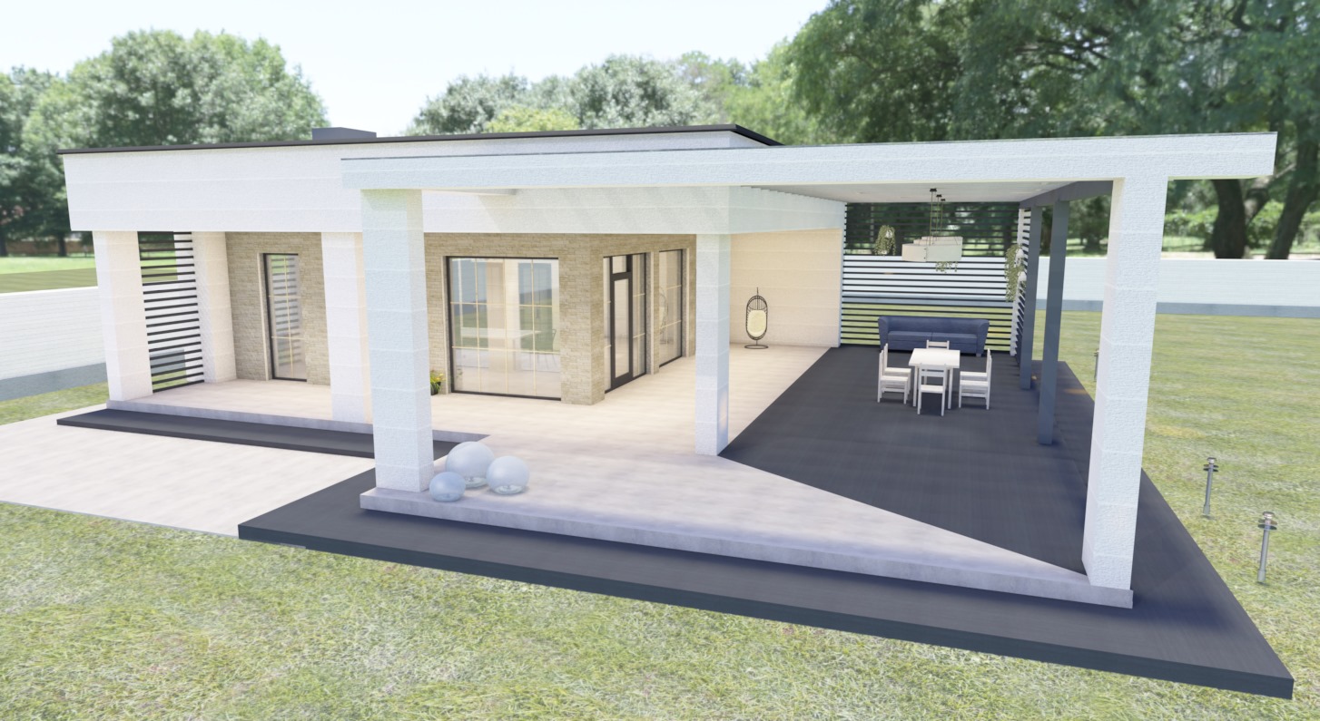 Проект Сканди 2 - одноэтажный дом из кирпича с плоской кровлей