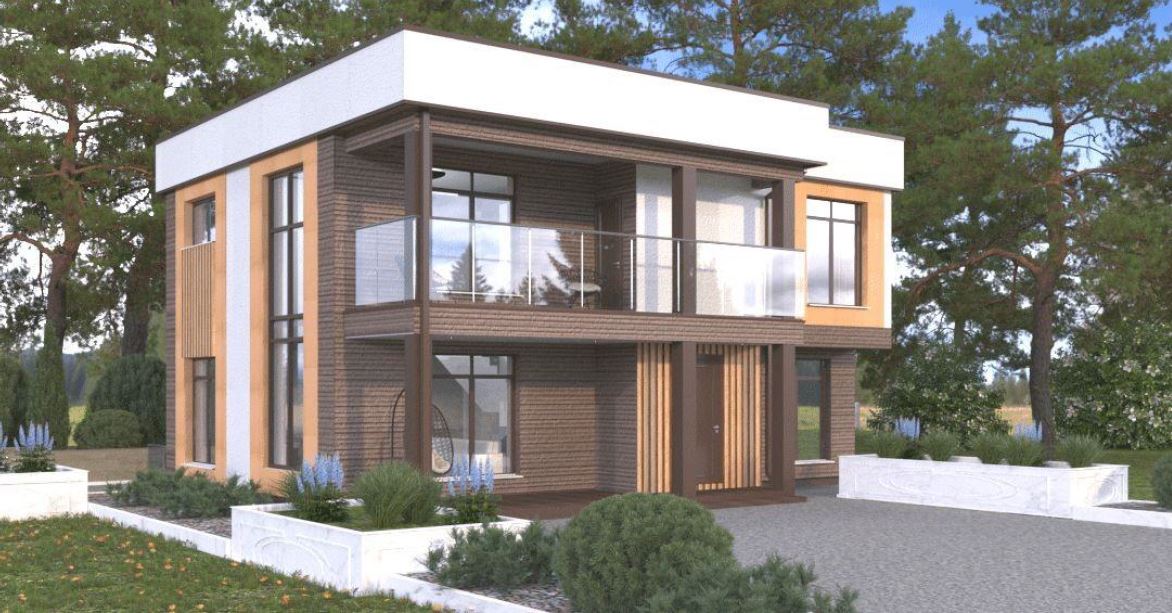 Проект Белград 250 - двухэтажный дом из кирпича с плоской кровлей