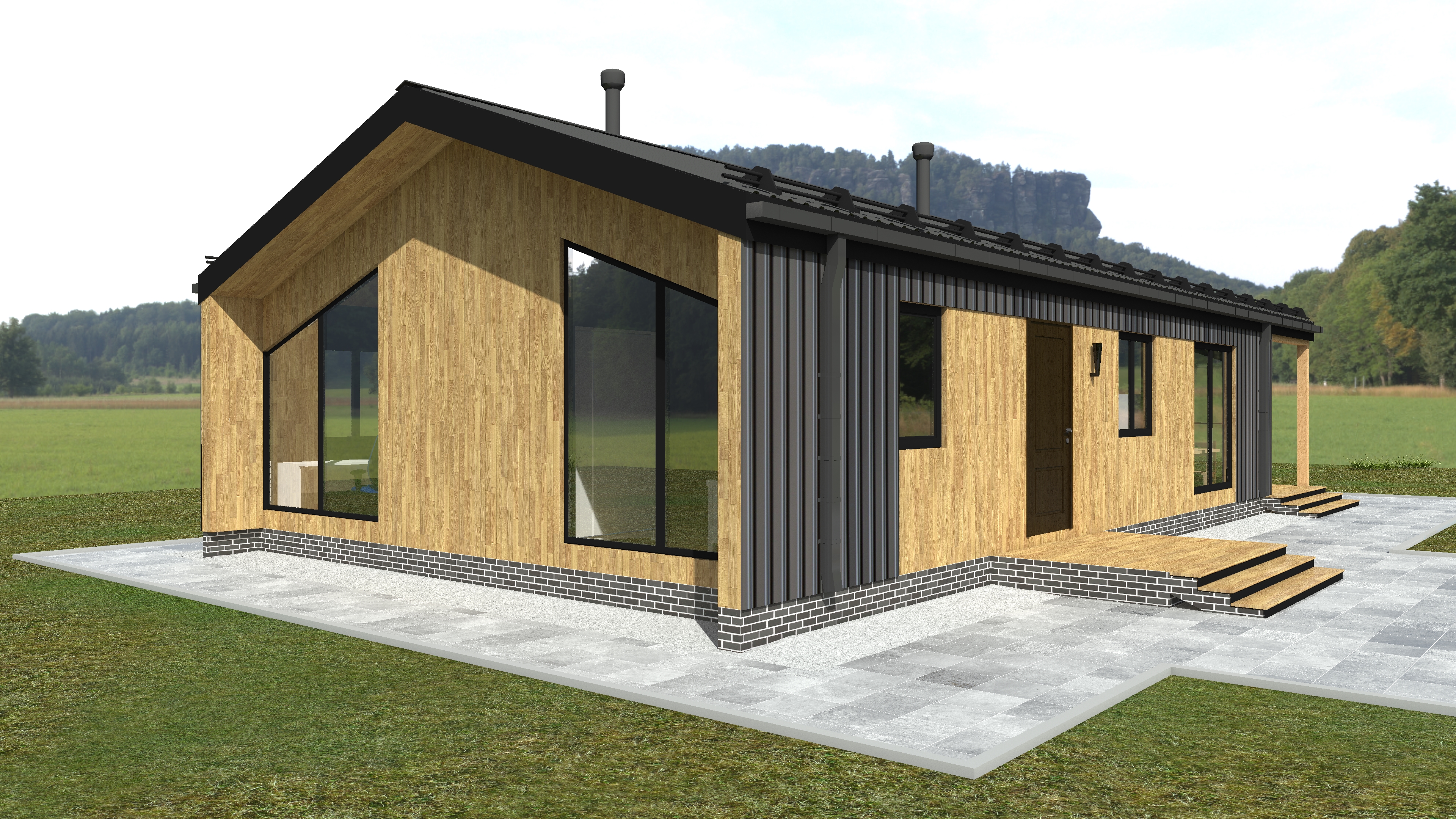 Одноэтажный дом в стиле барнхаус, выполненный по каркасной технологии
