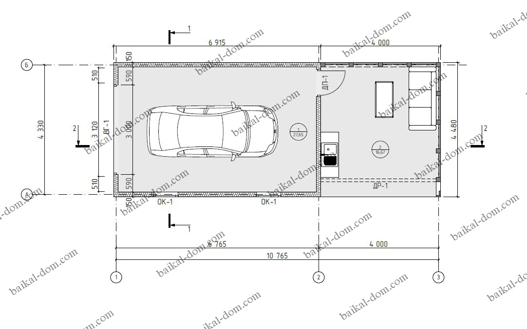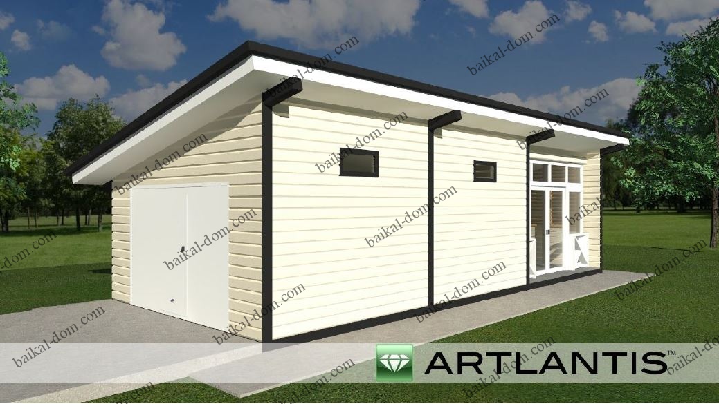 Одноэтажный каркасный гараж с летней кухней