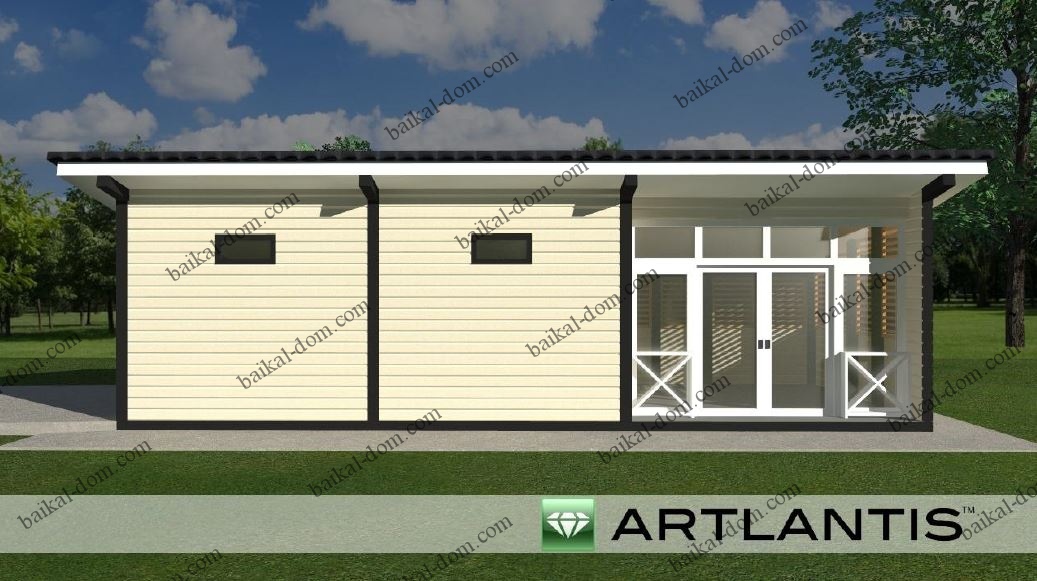 - Габаритные размеры дома: 10,7 х 4,3 м.
