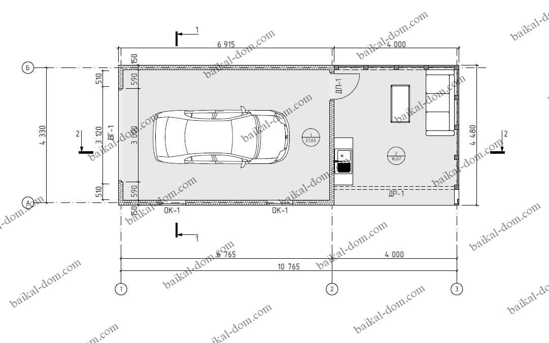 Проект каркасного гаража 48