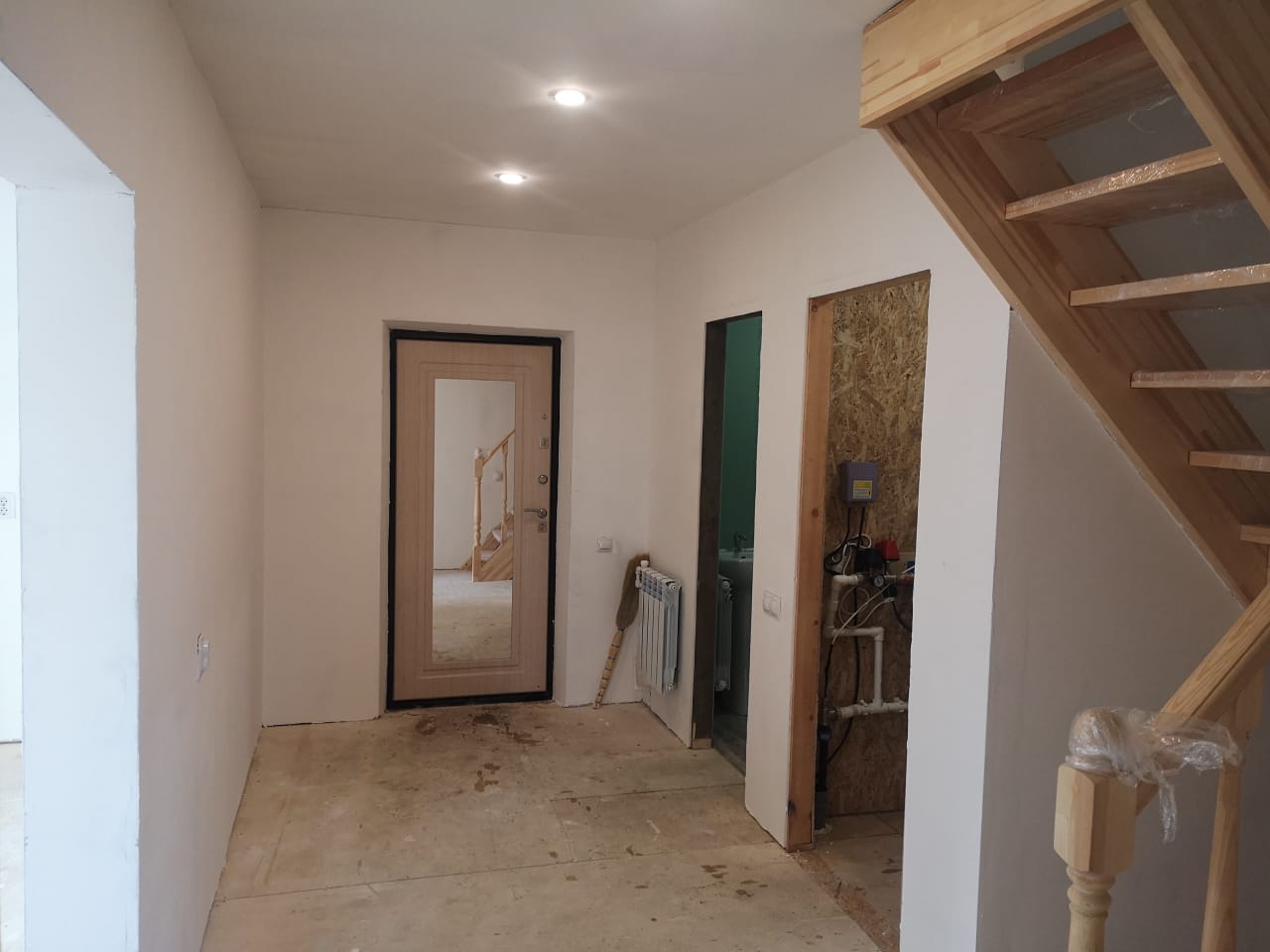 В коттедже выполнена чистовая отделка, вам потребуется только установить двери и покрасить стены или поклеить обои. Все выводы для установки санфаянса и кухни, есть.