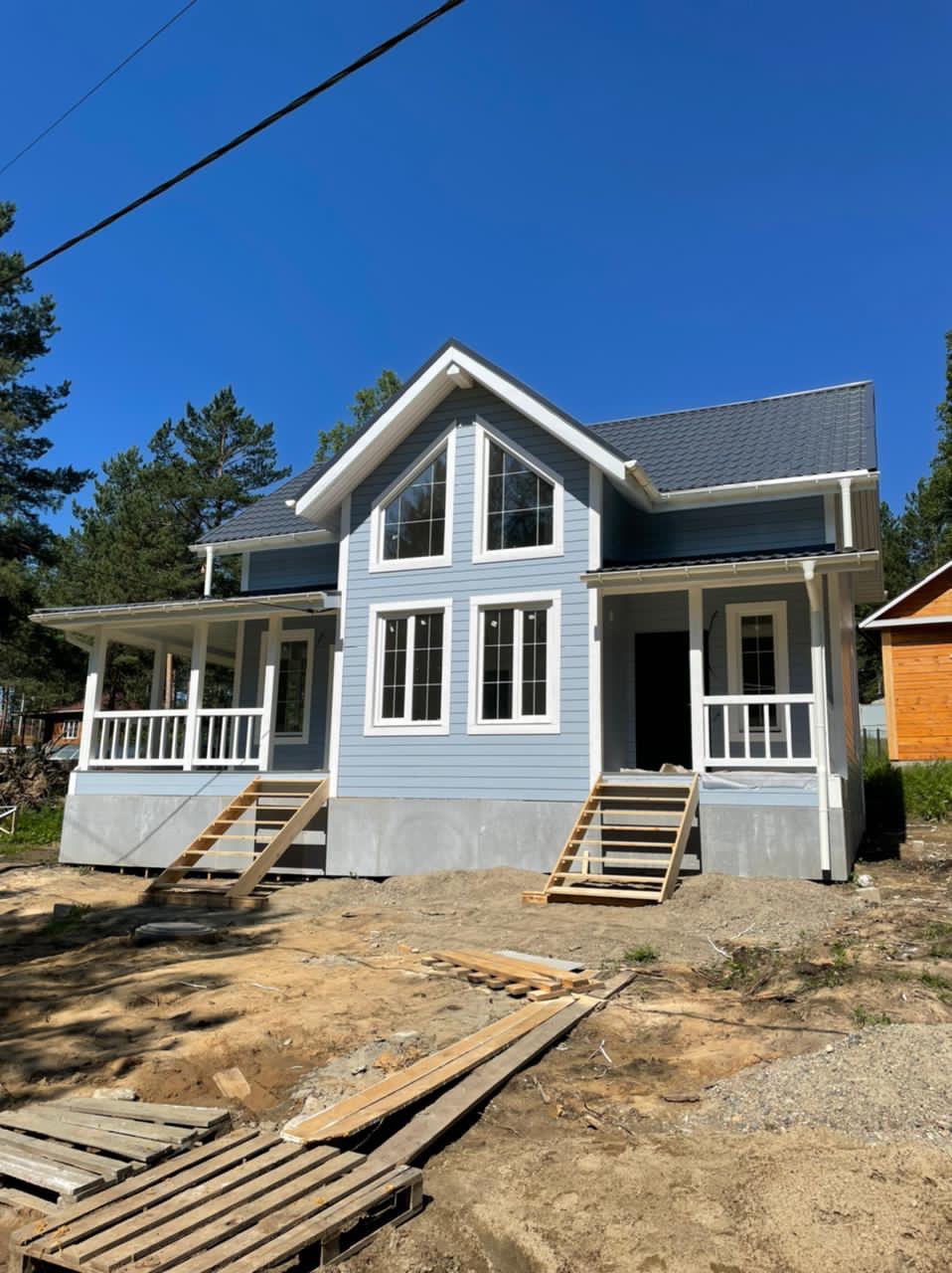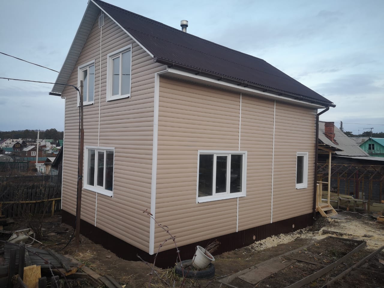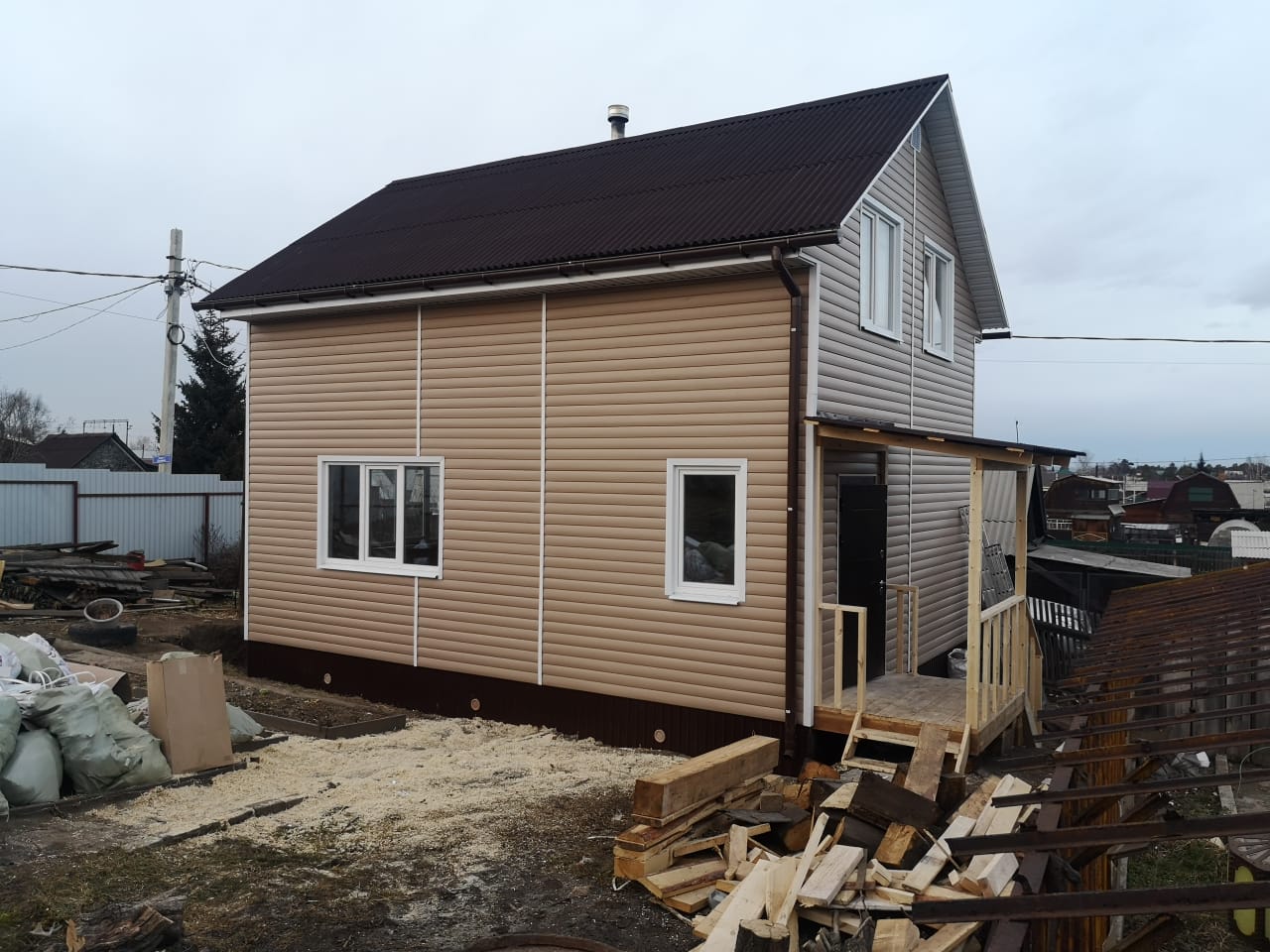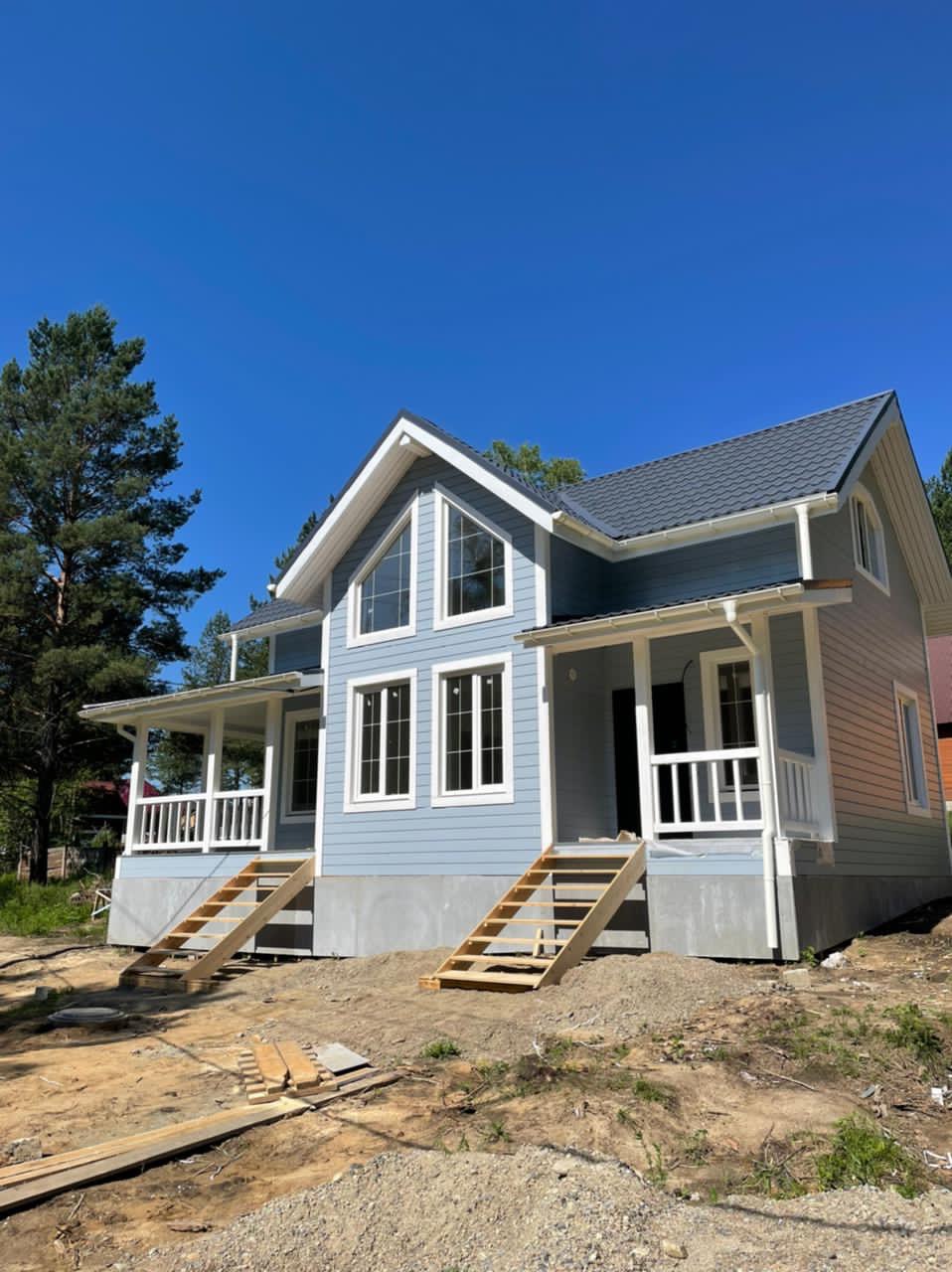 Каркасный дом Утепление 15 см везде пол фанера стены потолок гипс саидинг винил кровля ондулин фундамент винтовые сваи с утеплением и вентиляцией лестница из сосны 3 584 000р