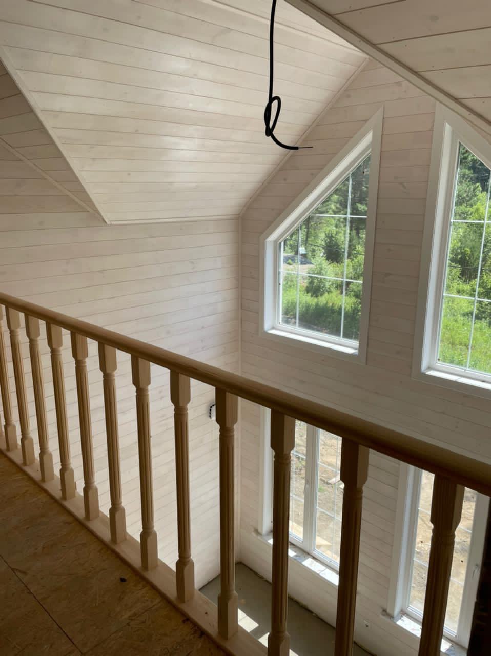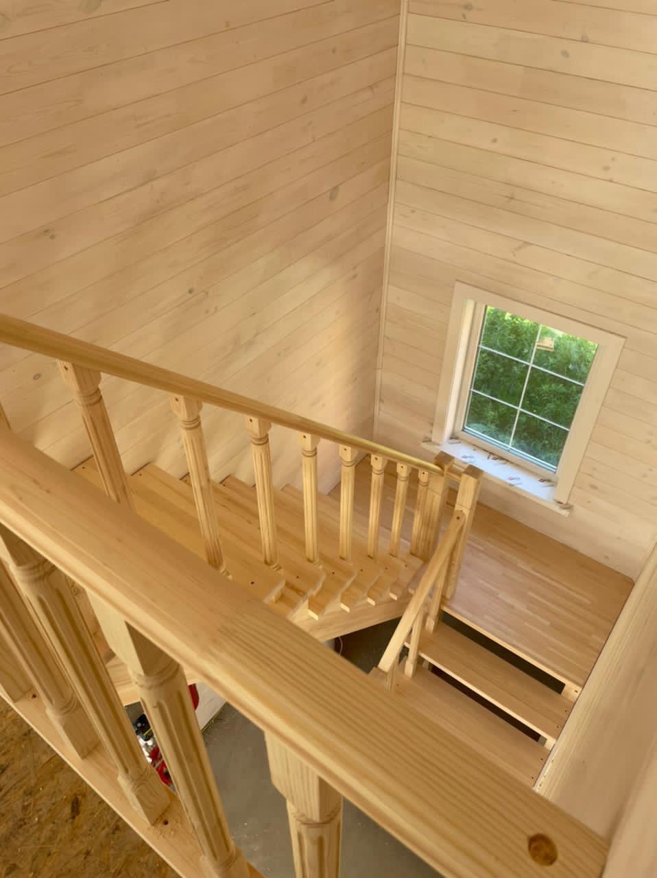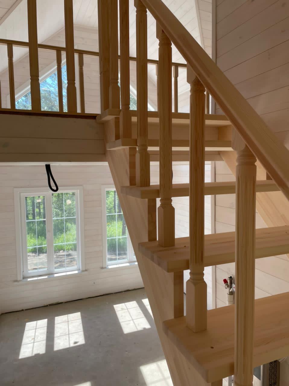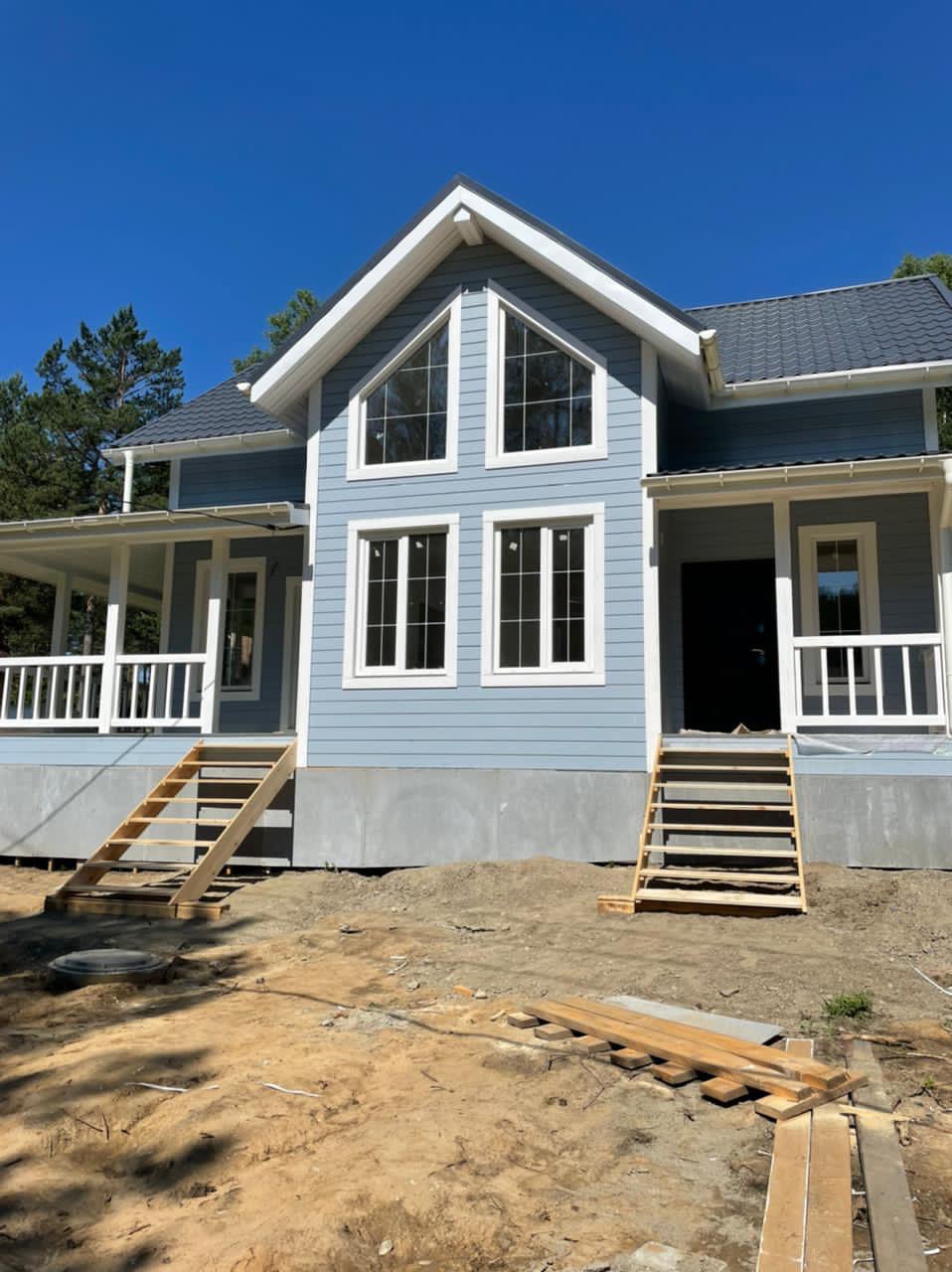 Каркасный дом Утепление 15 см везде пол фанера стены потолок гипс саидинг винил кровля ондулин фундамент винтовые сваи с утеплением и вентиляцией лестница из сосны 3 584 000р