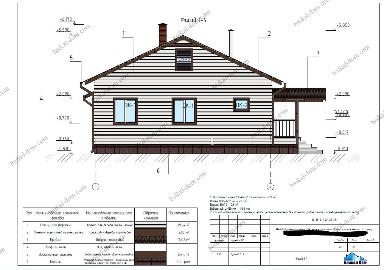 Данный проект разработан в компании "Байкал Дом". Конструктивно дом выполнен