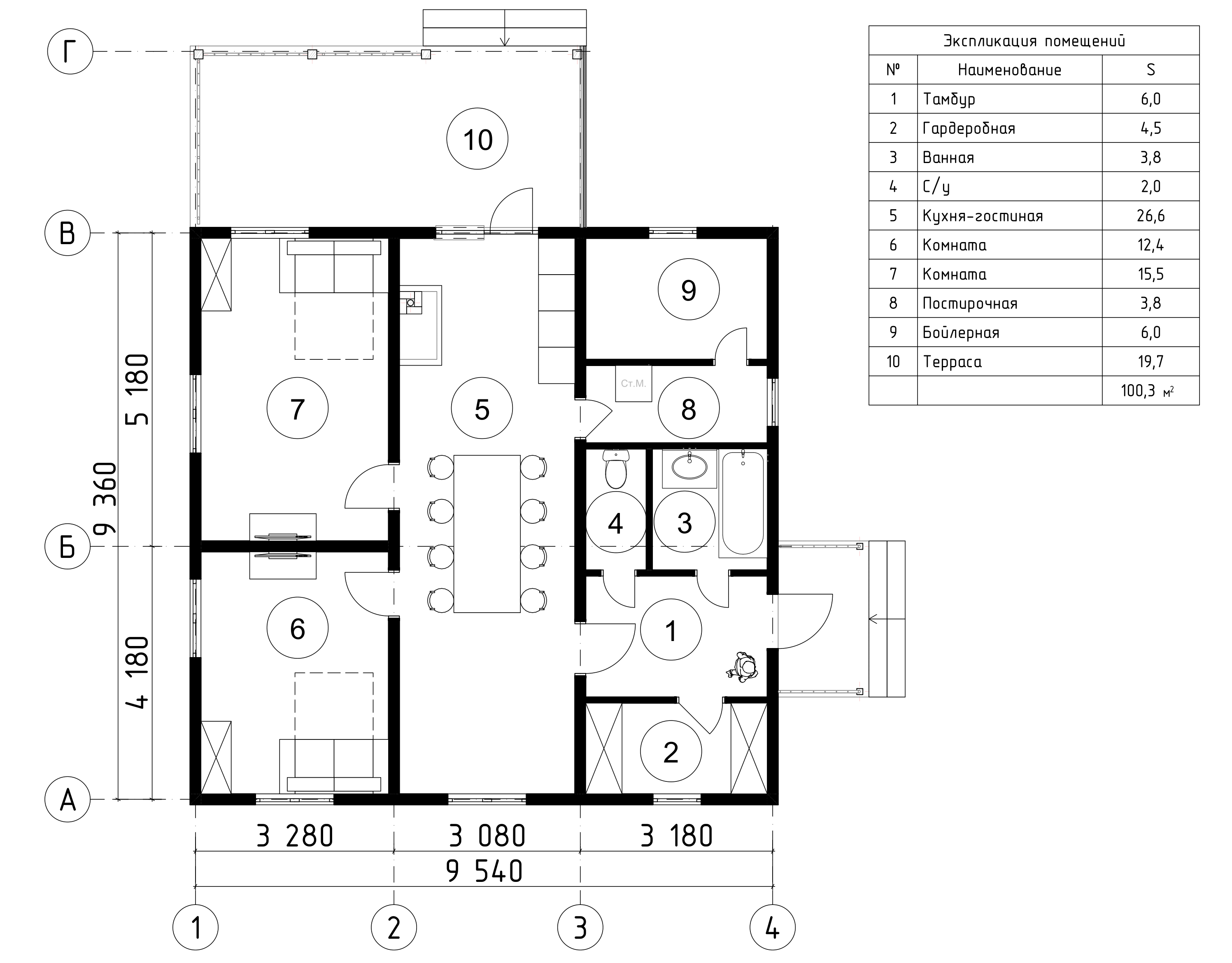 - Площадь террасы: 20 кв.м.