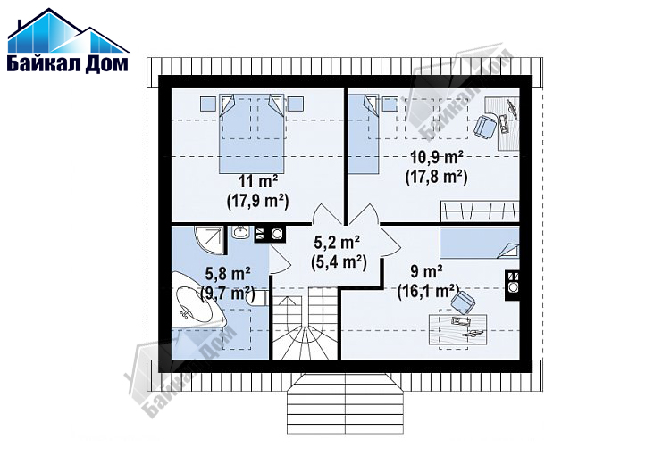 - простая форма, двускатная крыша, небольшая площадь делают дом выгодным в строительстве и эксплуатации;