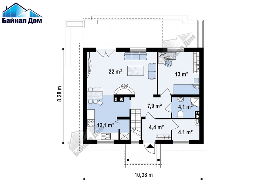 Функциональный и уютный дом Z14 прост и экономичен в строительстве и эксплуатации. Его главное преимущество — наличие дополнительной спальни на первом этаже, что важно для людей пожилого возраста и родителей маленьких детей.
