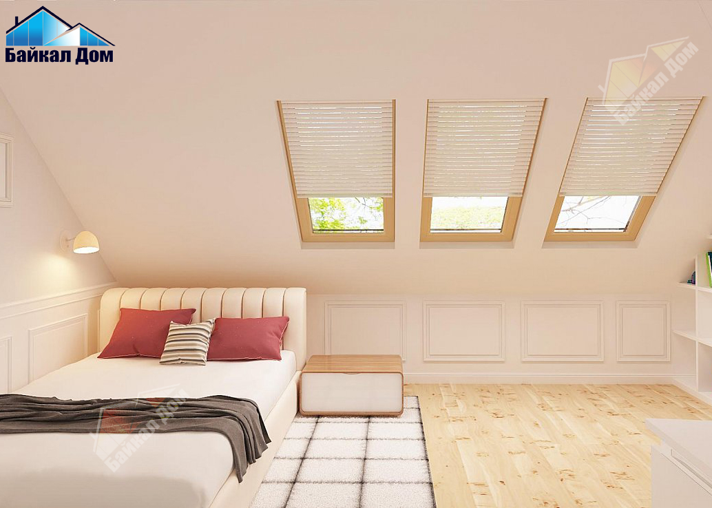 - большая ванная комната на мансарде может вместить всю необходимую сантехнику.