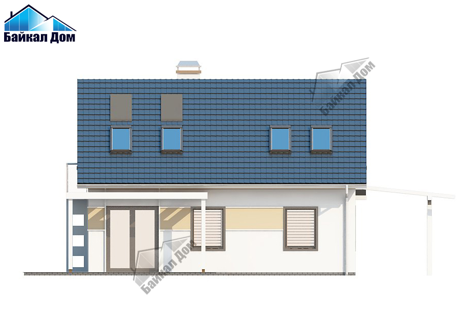 Экономичный в строительстве и реализации дом с удобной планировкой, с навесом для автомобиля
