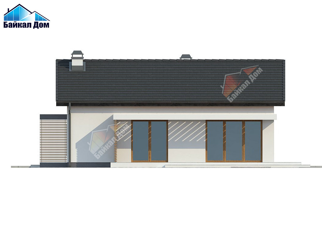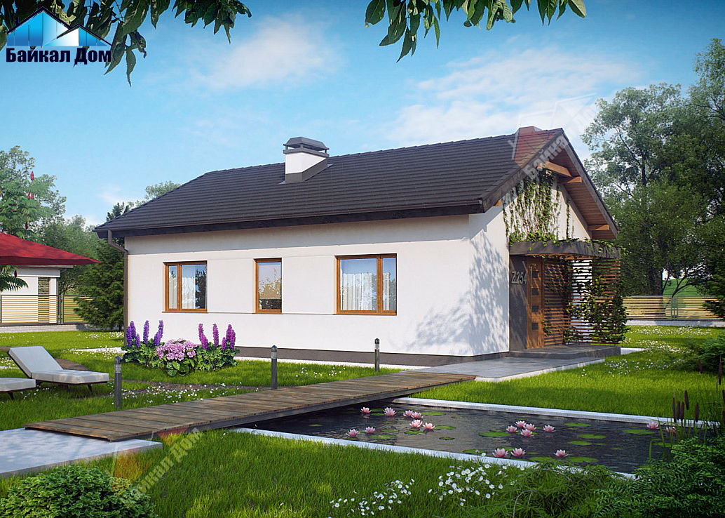 Компактный одноэтажный дом с боковым входом