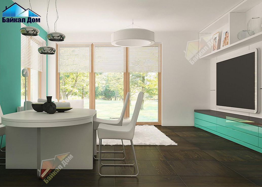 Хорошо продуманное большое остекление зрительно увеличивает гостиную, делая её уютной и комфортной;