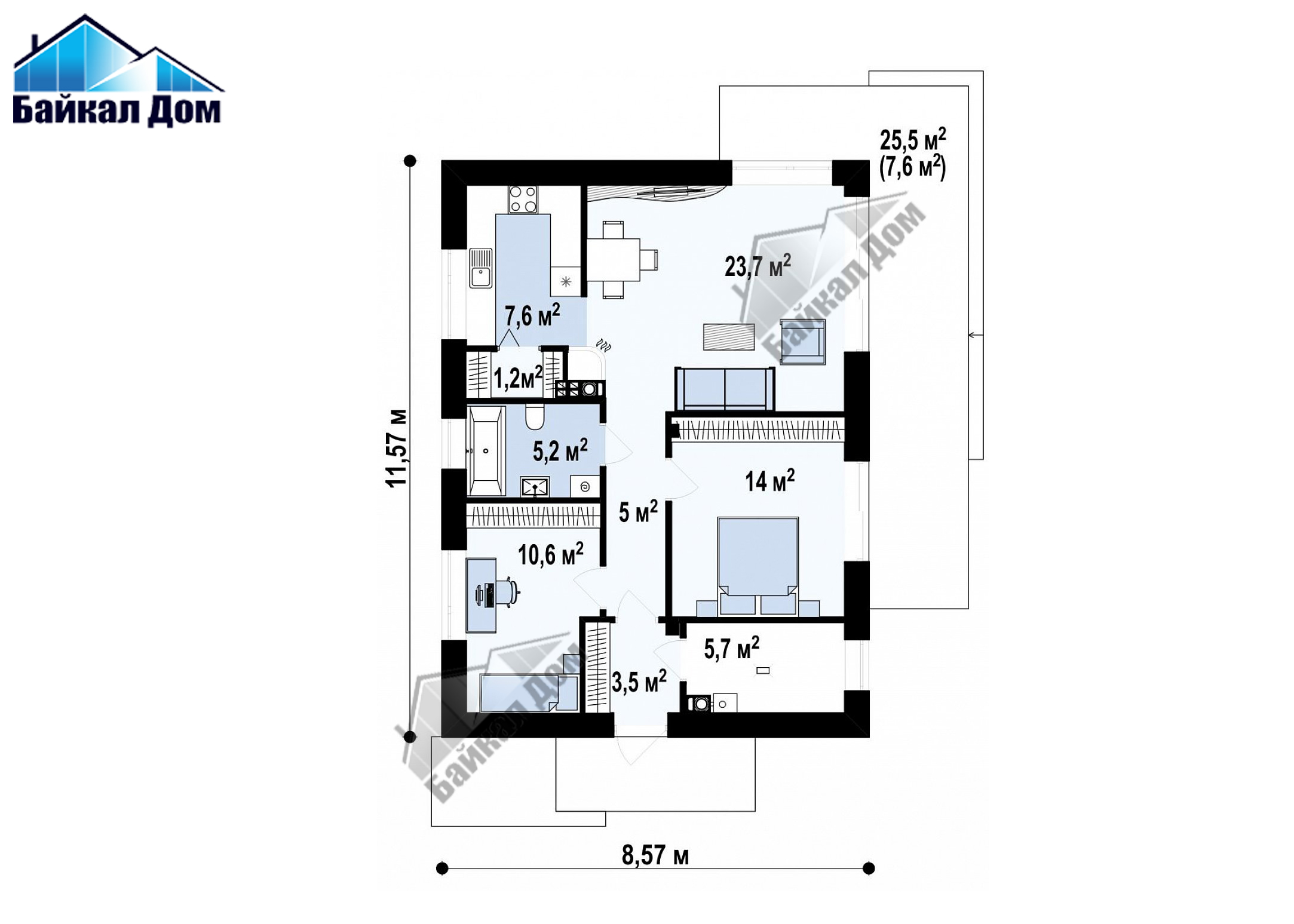 - Общая площадь 76,8 м²