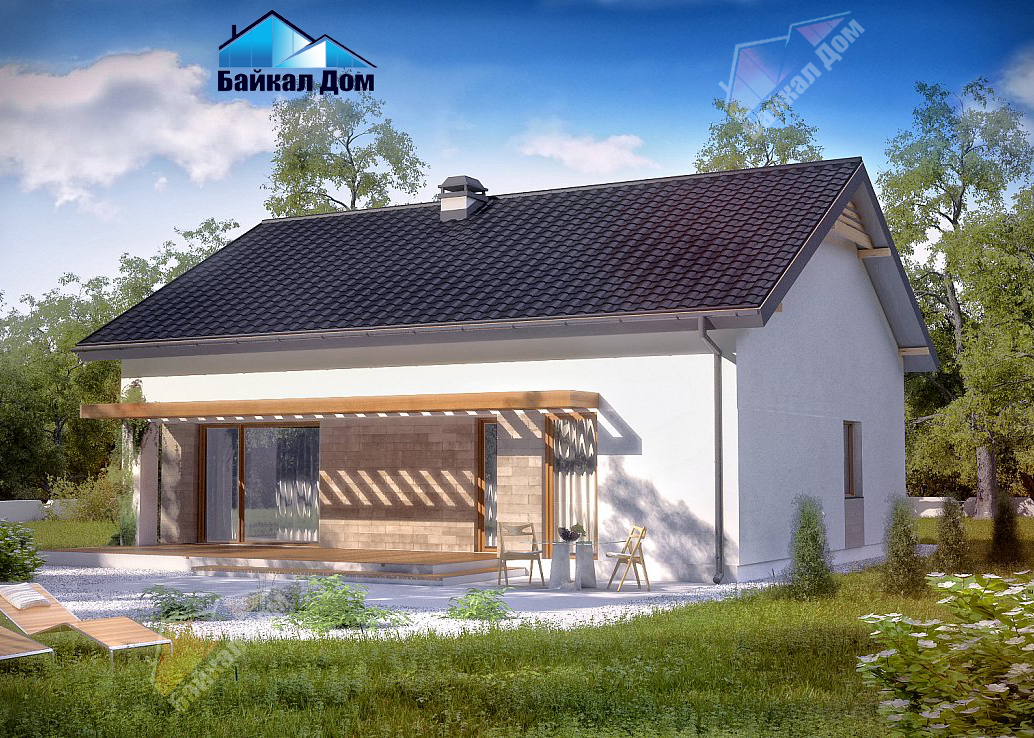 Проект небольшого практичного одноэтажного дома. Есть возможность обустройства чердачного помещения