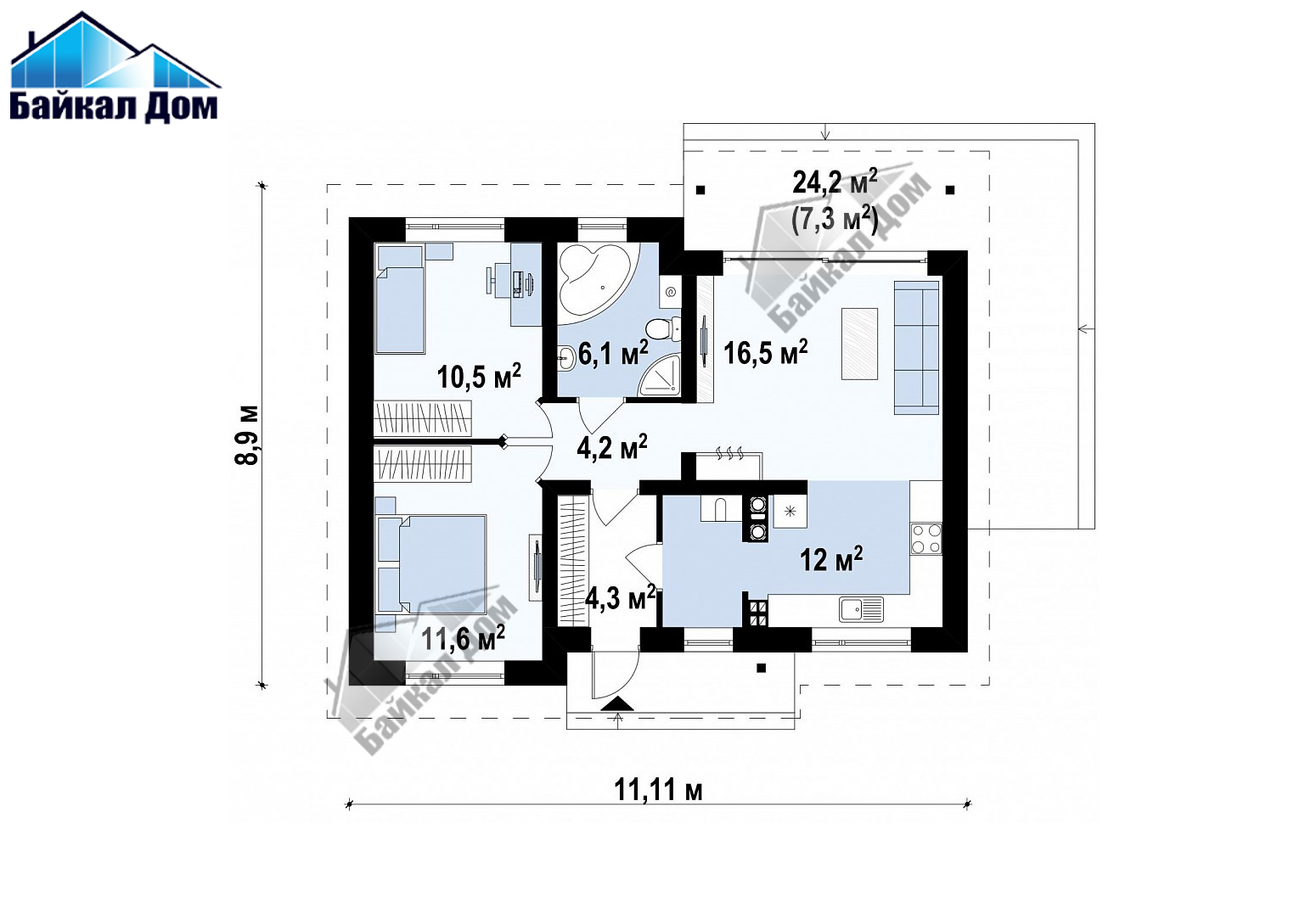 Простой и недорогой в строительстве одноэтажный дом небольшой площади