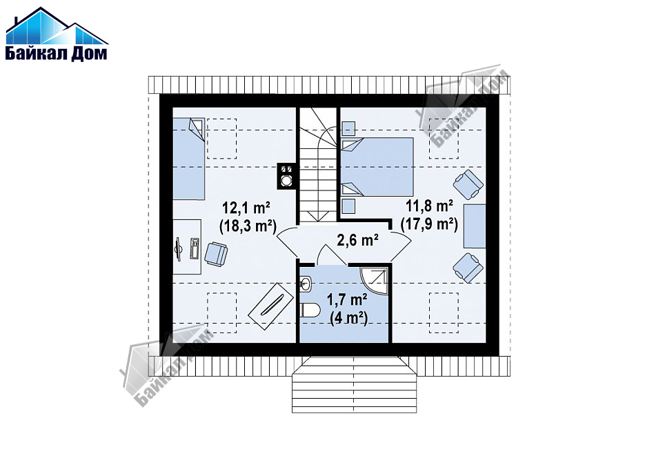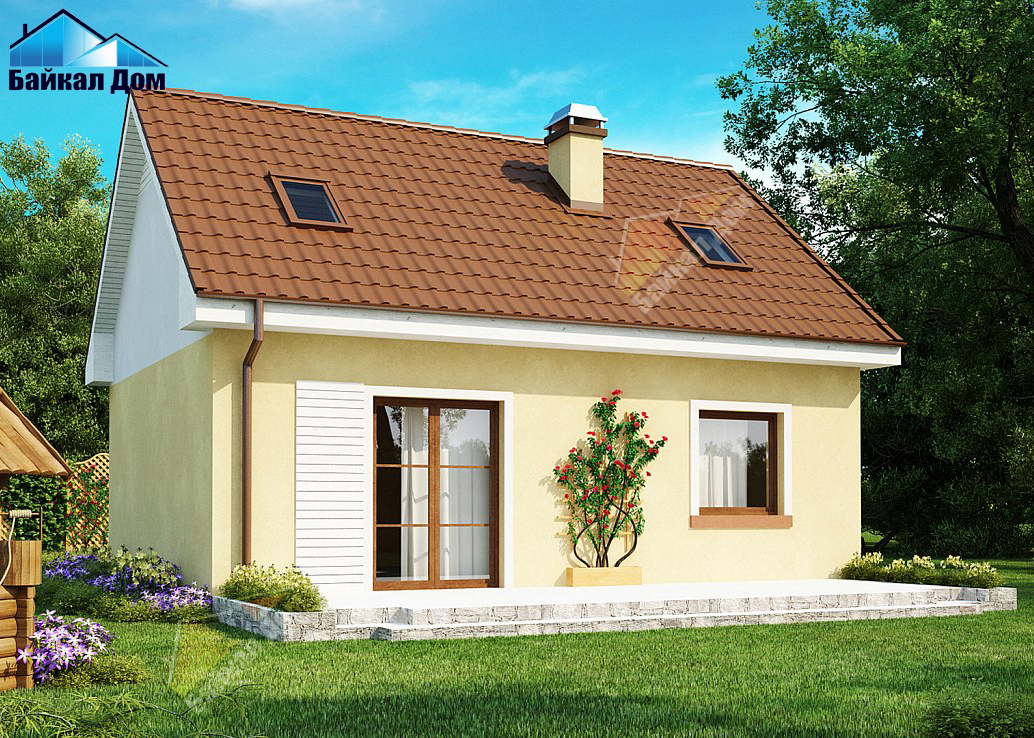 - Простая форма дома, его небольшая площадь, двускатная крыша способствуют значительной экономии средств во время строительства и эксплуатации.