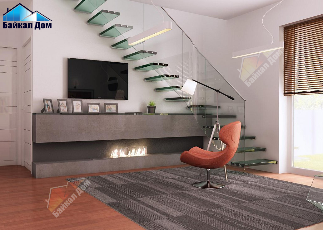 - Камин, расположенный в центре гостиной является и важной эстетической составляющей интерьера, и дополнительным источником тепла.