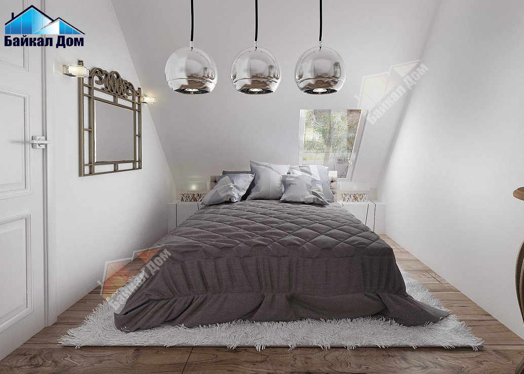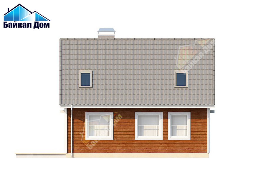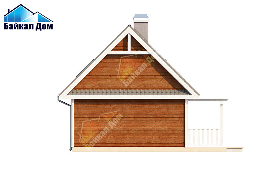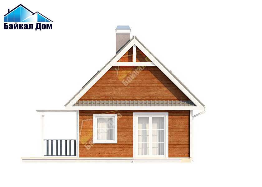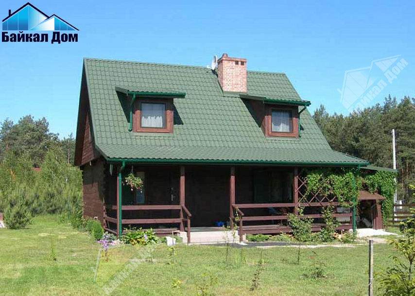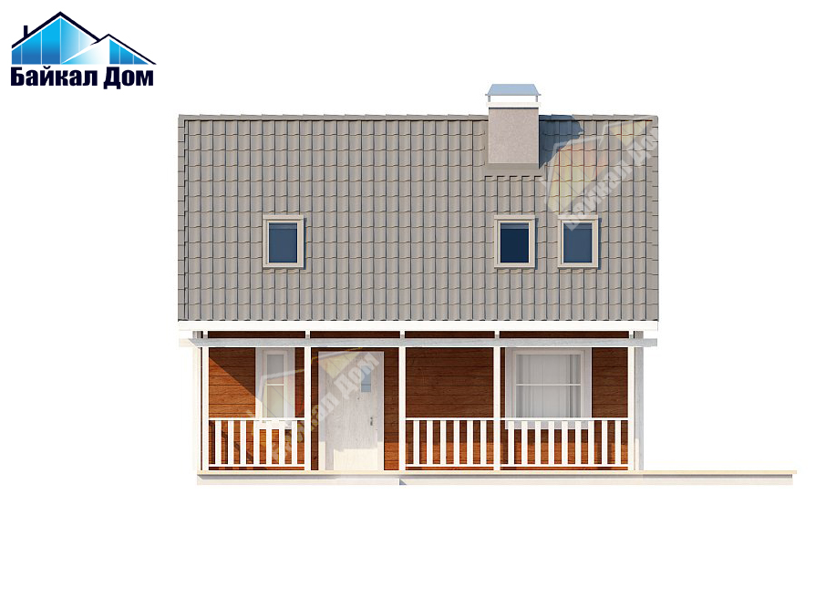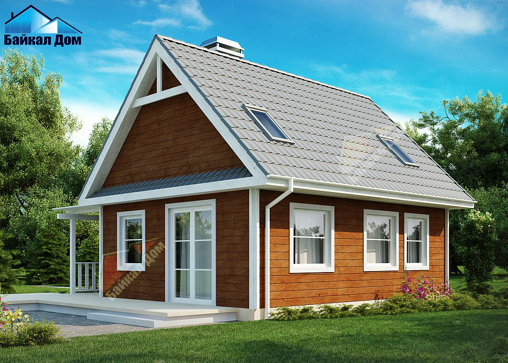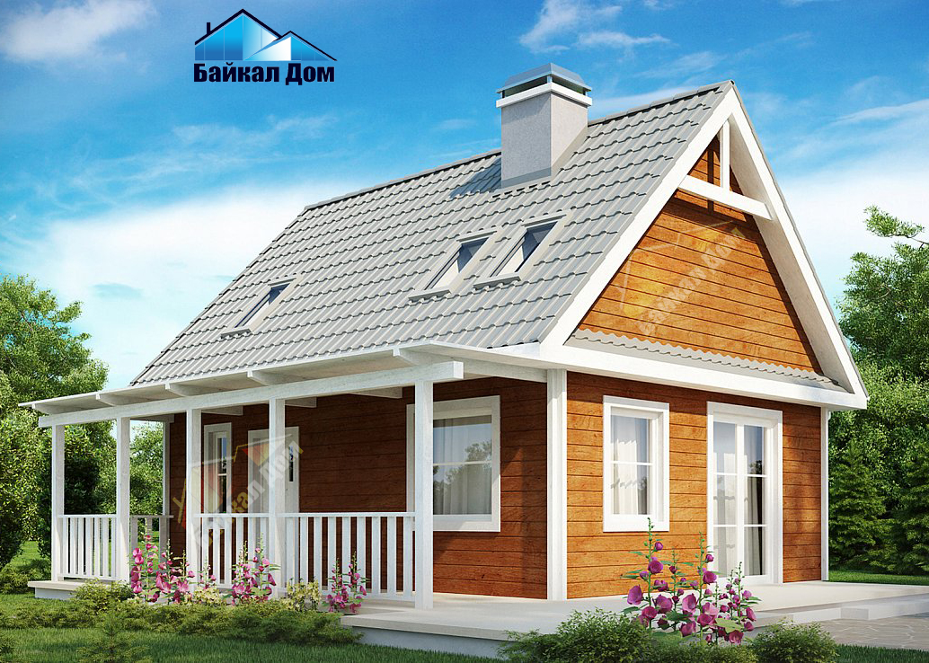 Маленький, уютный дом с мансардой, двускатной крышей и c фронтальной террасой