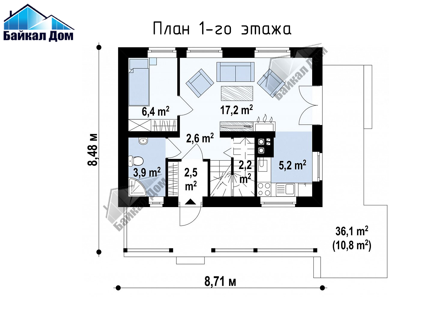 - Площадь застройки 84,5 м²