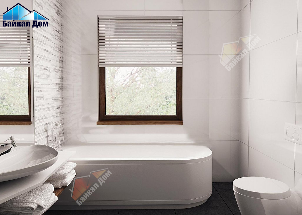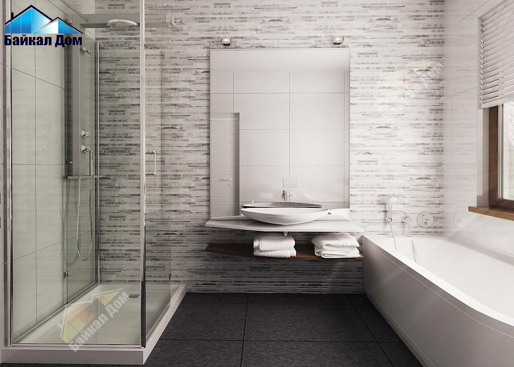 - Ванная комната вмещает и душевую и ванну. При необходимости в ней можно отделить стенной перегородкой подсобное помещение.