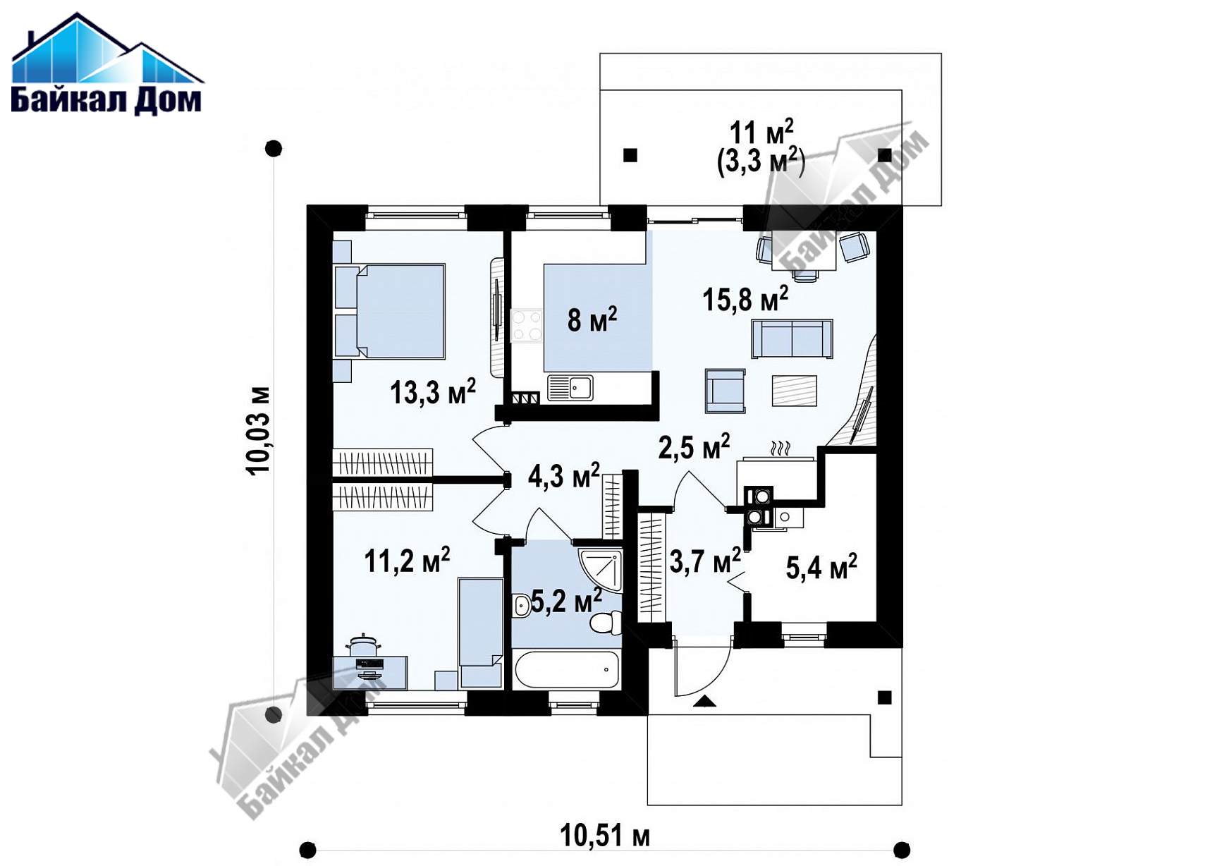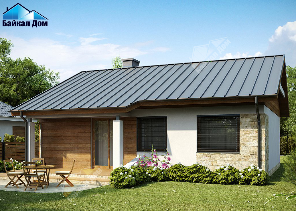 Комфорт в использовании помещений на одном уровне исключает переход с этажа на этаж, и связанные с ним неудобства. Простая форма, конструкция и двускатная крыша, а также небольшая площадь позволяют вести строительство быстро и экономично, а также снизить эксплуатационные расходы эксплуатации.