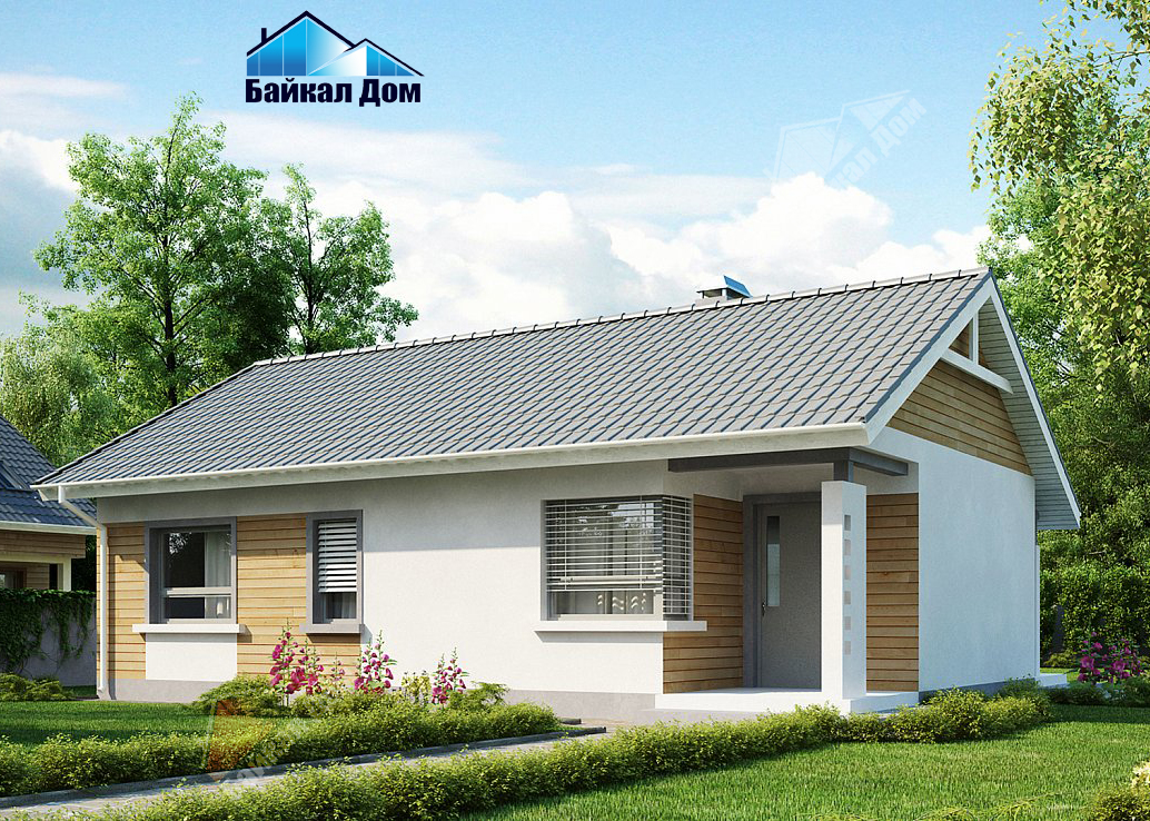 Преимущества проекта Z87: Максимально рациональная планировка позволила сделать все комнаты достаточно просторными для такой небольшой площади дома. Одноэтажная планировка предоставляет быстрый доступ к любой из комнат. К тому же она практичнее и безопаснее двухэтажной для семей с маленькими детьми и пожилых людей. Простая форма дома, его небольшая площадь, двускатная крыша способствуют значительной экономии средств во время строительства и эксплуатации. Отсутствие внутренних несущих стен дает возможность вносить самые разные изменения в планировку по желанию хозяев.