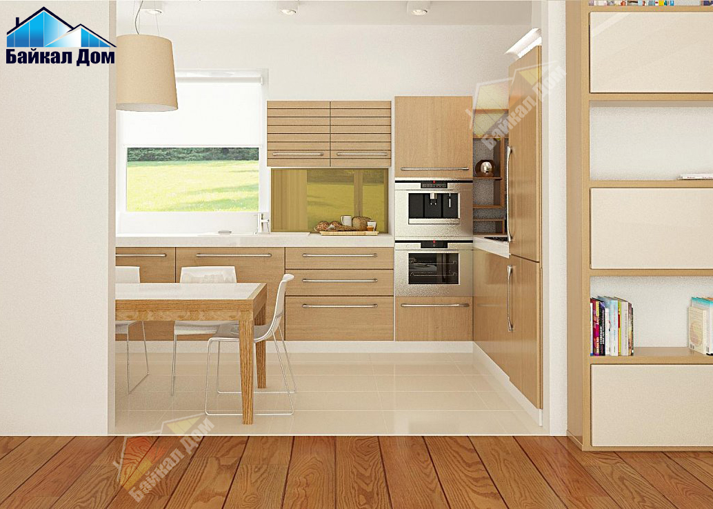 Выгодный компактный одноэтажный дом с угловым окном в кухне